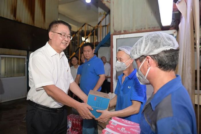 杨旭辉对化研院干部职工能够从集团大局出发,在极短的时间内无条件搬离工作多年的办公区域,为集团“三个北化”建设推进创造条件给予了充分肯定。在慰问过程中,杨旭辉将防暑降温饮品送到职工手中,叮嘱大家要注意劳逸结合,做好高温防护。杨旭辉逐一走访各部门,特别询问大家搬家后遇到的困难,以及需要集团协调解决的问题,并要求集团相关部门要做好服务保障。
